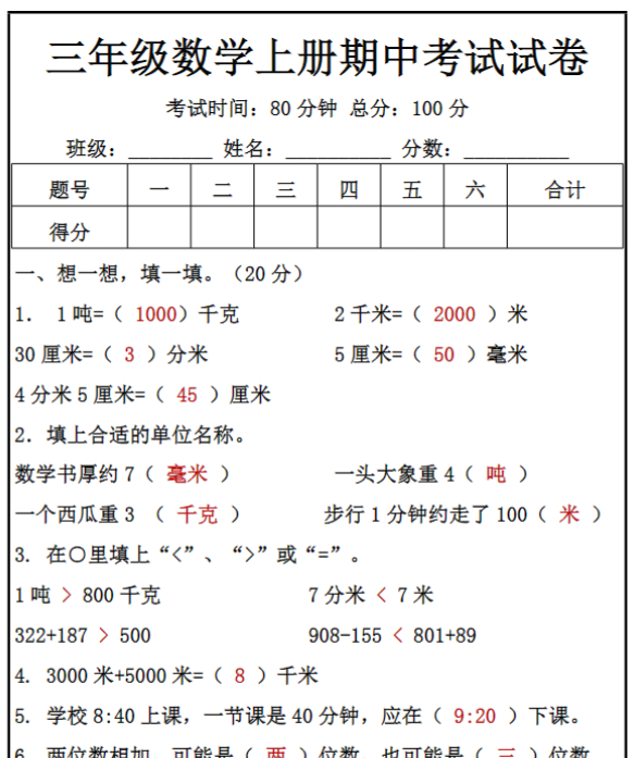| 🔥新版期中打包13套!小学三年级数学上册精品测试卷一键下载✅ 可编辑高清无水印,秒速打印,助孩子期中冲刺100分!限时免费获取,错过再等一年! | |