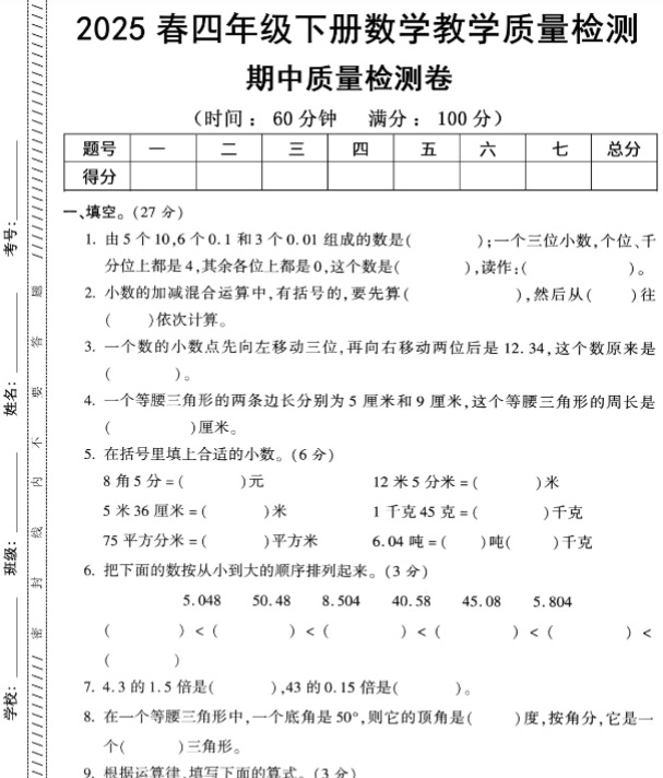 | 🔥一键快速保存,全面覆盖小学四年级下册数学北师版期中考点!5套精品试卷含答案解析,扫码即存,名师精编,备考冲刺高效提分,错过再无!立即下载期中冲刺密卷,稳拿高分! | |