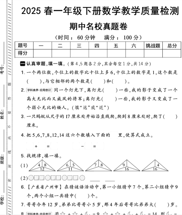 | 🔥一键快速保存,新版小学一年级数学期中5套密卷(北师版)全收录!高清可打印,秒速获取期末冲刺神器,让孩子轻松稳拿高分!立即点击下载,备考无忧! | |