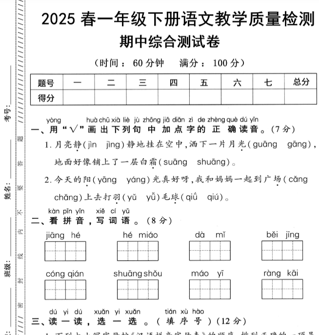 | 🔥一键快速保存,获取小学一年级下册语文期中5套通用试卷!新版本期中打包限时下载,内含标准答案与答题技巧,让孩子轻松冲刺高分,家长辅导无忧!立即点击保存,抢占备考先机! | |