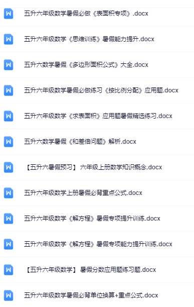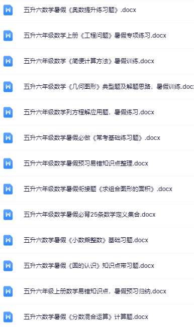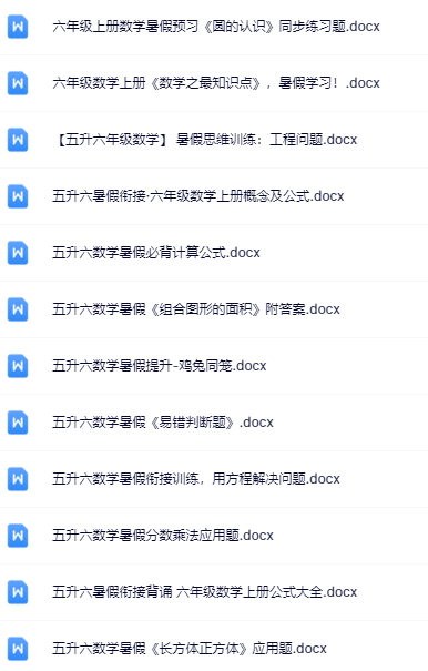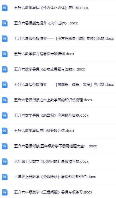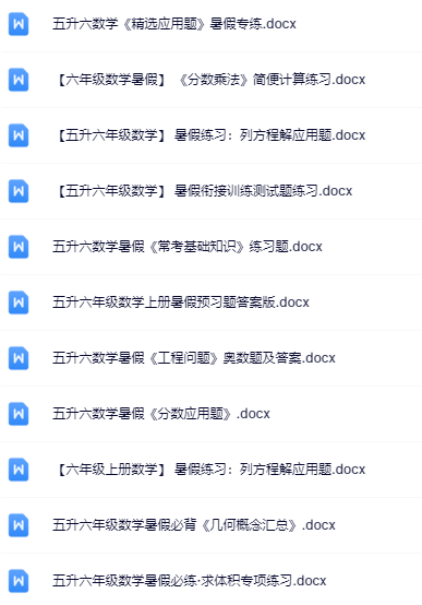 | 五升六暑假数学资料大全集【高清无水印+可编辑+持续更新】 | |