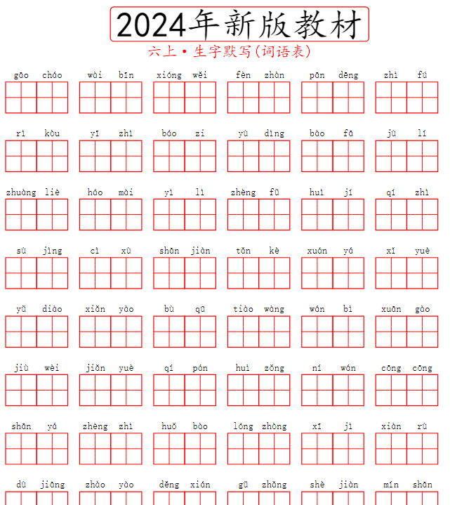 | 【精品】《语文暑假预习生字默写表》1-6年级(可打印PDF高清版) | |