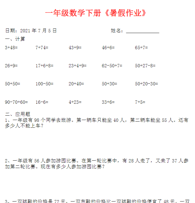 | 【小学数学暑假逆袭就这一份】1-5年级全套《暑假作业》+答案解析,一键下载打印,让孩子弯道超车!限时免费领取! | |