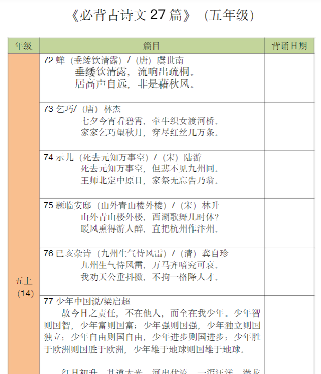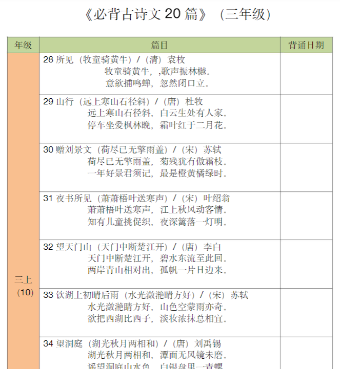 | ⏰限时免费下载《暑假古诗文背诵记录表》1-6年级完整版!一键保存,让孩子暑期古诗背得又快又牢! | |
