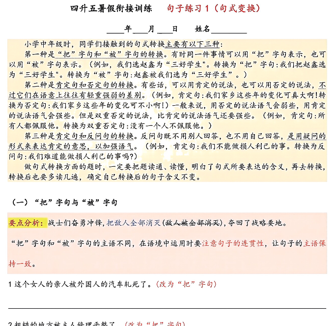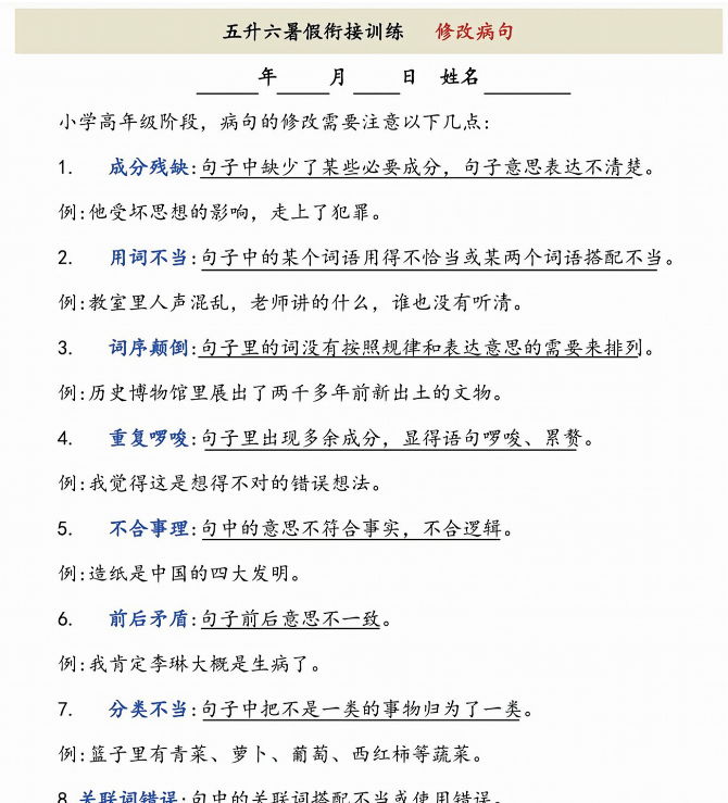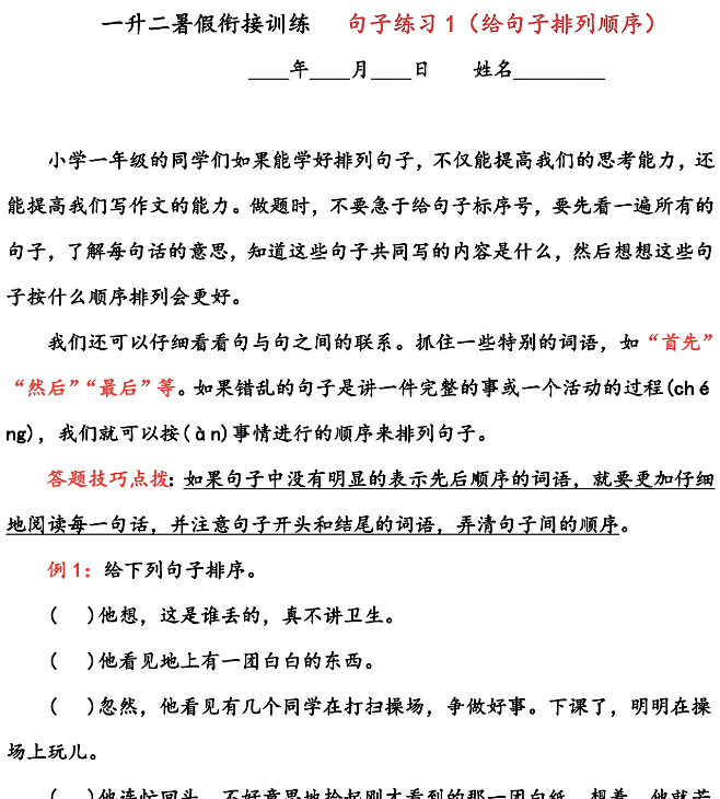 | 🚀【立即一键保存】《暑假衔接句子练习》1-5年级语文电子版(附答案)📥 让作文从暑假开始飞跃! | |