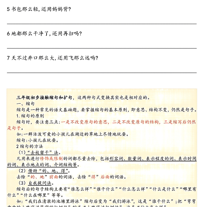 | 内容优势 | ✅ 符合新课标要求,衔接秋季教材重点句型 ✅ 每单元含仿写训练+病句修改+情境补写,举一反三效果显著 ✅ 配套名师讲解音频,扫码听写作技巧 ✅ 排版清晰护眼PDF,适合家长辅导/教师备课! |