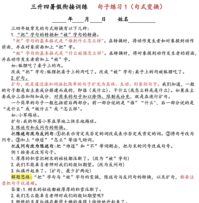 | 【精品】《暑假衔接句子练习》1-5年级语文(完整 printable 版) | |