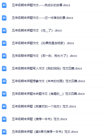 | 【限时免费领取】200份五年级语文期末试卷打包→一键下载+一键保存,高清可编辑,立即抢先进阶学习资源! | |