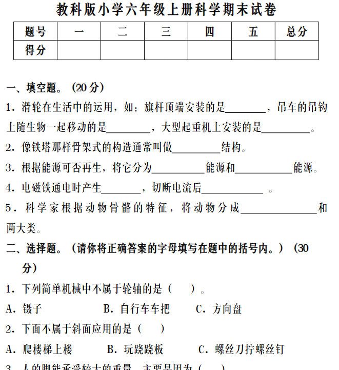 | 7份!最新六年级上册科学期末精品试卷资料打包下载【高清无水印+可编辑】 | |