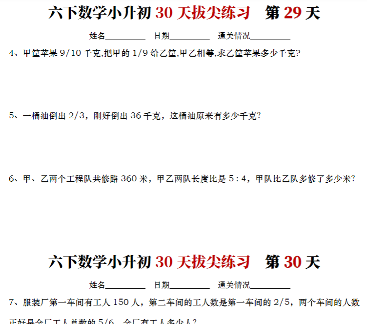 | 六下数学小升初30天拔尖练习计划(精简20页)— 期末冲刺必刷提分神器! | |