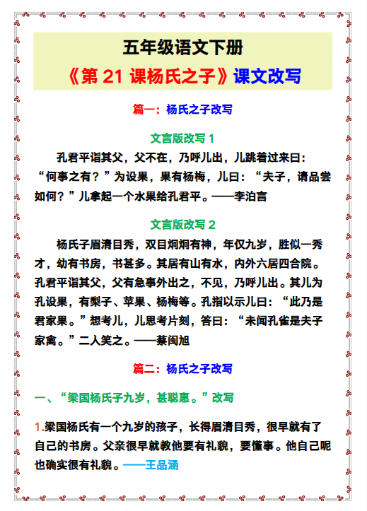 | 使用场景 | ✏️语文课堂创意教学素材 📝学生课文仿写训练范本 🖨️教师课件定制参考资料 📈大考高频“文本改写”题型专项突破 |