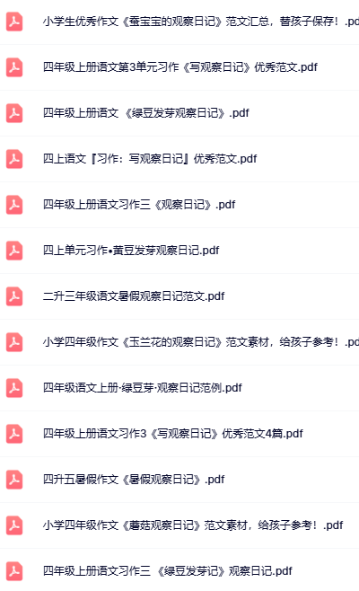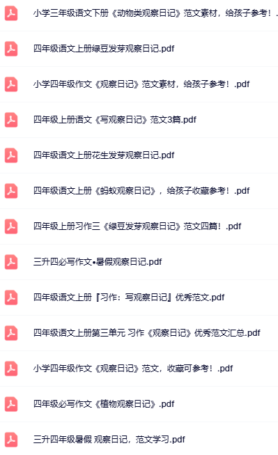 | 🔥31份高清完整版观察日记持续更新!一键保存,秒速获取全套写作范本,作文提升必备神器,错过再无!立即点击下载打造满分日记! | |