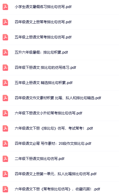 | 内容优势 | 📌 排比句黄金结构:3种开头+5类主体+2种结尾,一键套用秒出高分! 📌 精选名校学霸&特级教师精品范文,高清完整排版,打印即用零误差! 📌 每份标注适用主题与得分点,快速下载秒懂运用,作文不再跑题! 📌 搭配【排比专项训练题】,一键保存配套练习,边学边练效果立现! |