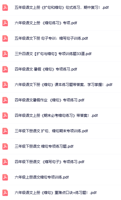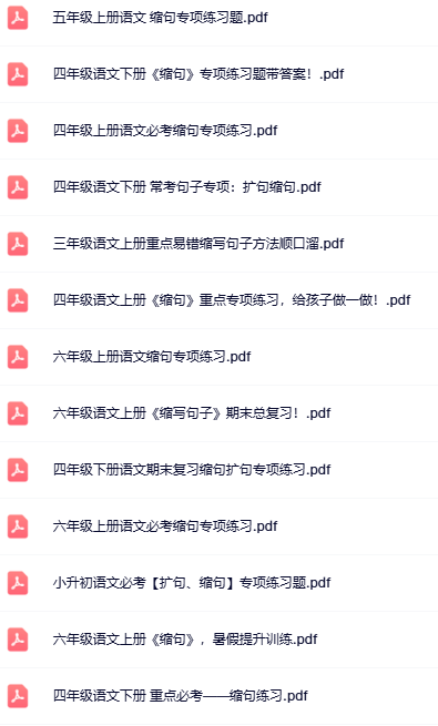 | 资源亮点 | ✅ 65份系统缩句清单,全网独家持续更新! ✅ 高清PDF可一键下载打印,文本清晰不模糊! ✅ 按题型分类归纳,涵盖单句、复句、病句修改等全类型! ✅ 附带答案解析与答题技巧,高效提分一步到位! |