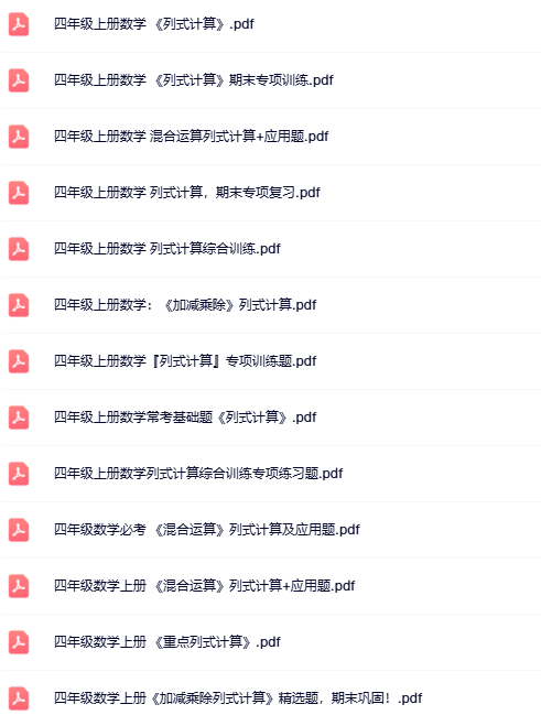 | 资源亮点 | ✅91份全高清PDF文档,清晰排版一目了然! ✅覆盖小学到初中阶段各类列式计算题型,同步更新中! ✅一键保存即永久获取,随时打印反复练习! ✅由一线数学教师精选整理,零广告、无水印,纯净学习体验! |