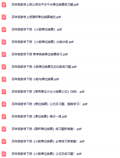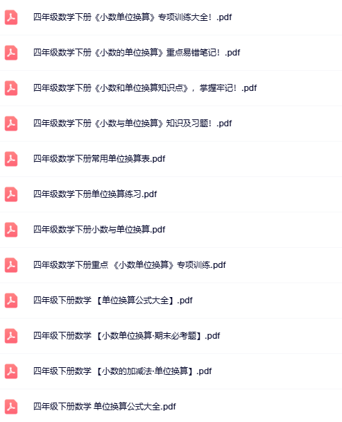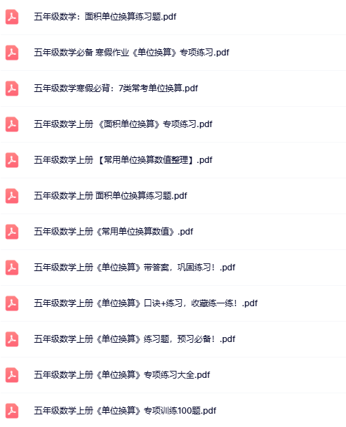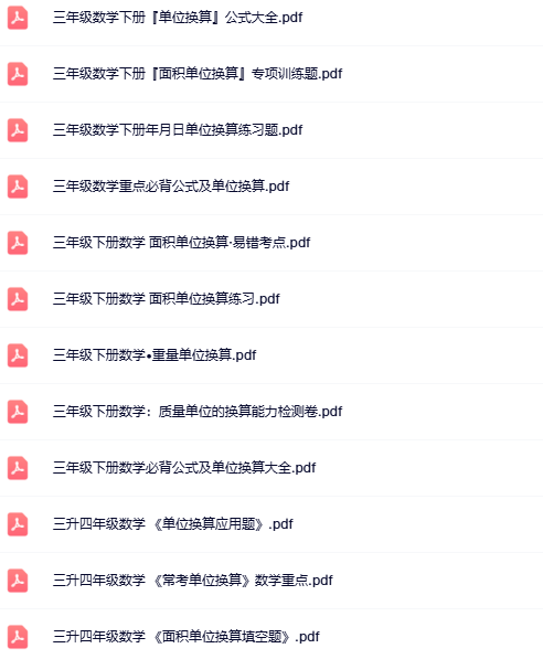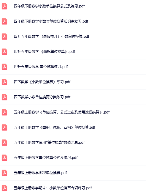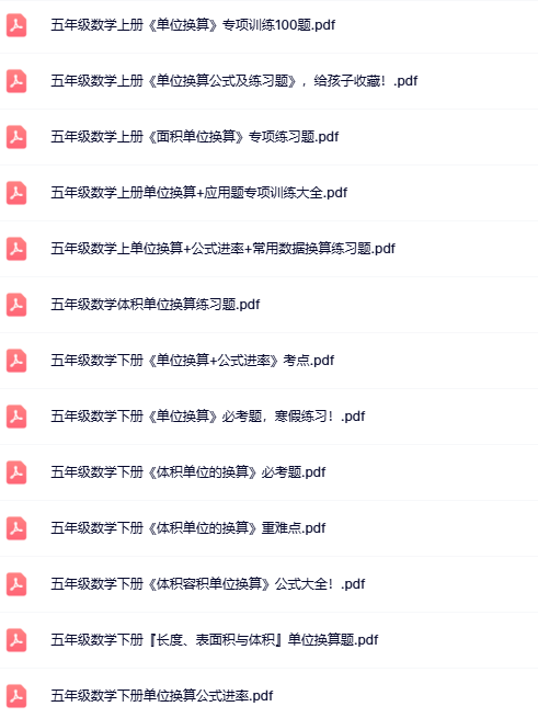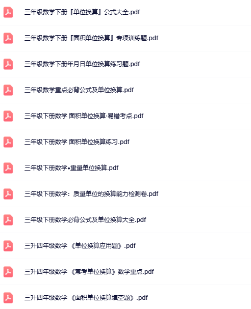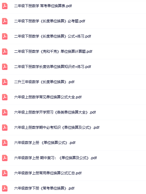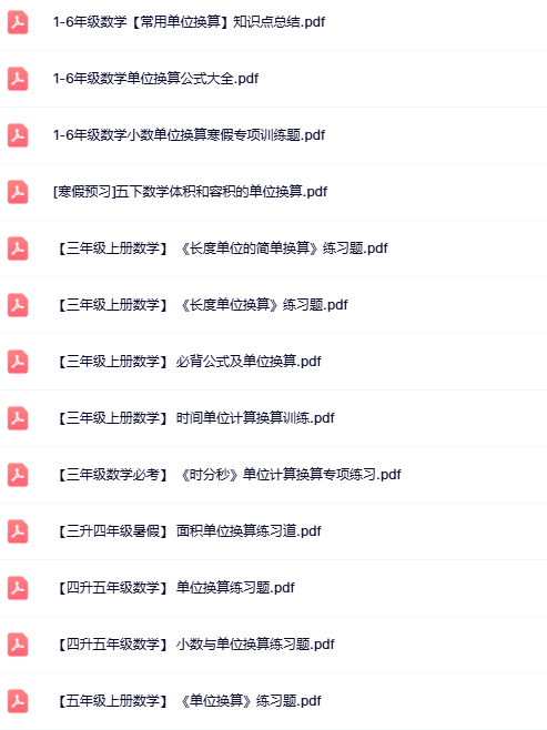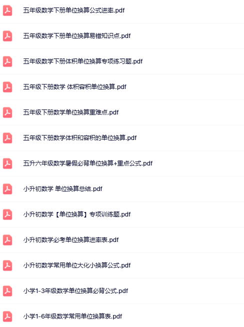 | 资源亮点 | ✅213份全面单位换算清单,涵盖长度、面积、体积、重量、速度等全场景! ✅高清无水印原图,✅持续更新版本,紧跟教学与考试最新标准! ✅一键保存PDF高清版,手机电脑随时查阅,学习效率翻倍! |