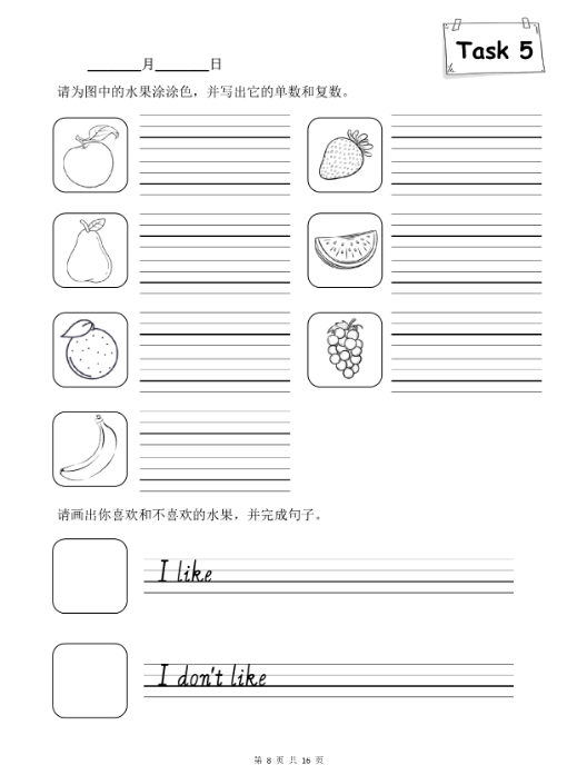 | 内容结构 | ▫️Week 1-2 基础词汇卡(图片+英汉双版) ▫️Week 3-6 情景阅读理解(含答题导图) ▫️Week 7-8 创意写作模板(附范文)+语法专项 ▫️趣味拓展:英文谜题+节日文化彩蛋 |