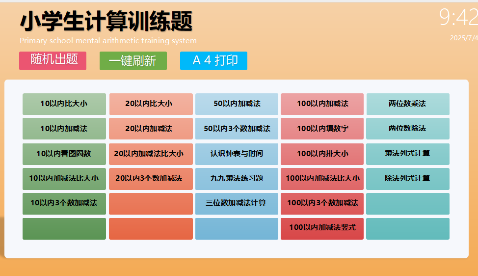 | 【立即下载】小学生口算自动化训练表 – 让计算又快又准,一键保存+无限刷新! | |