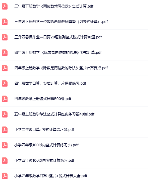 | 一键快速保存,25份竖式计算最新整理持续更新版高清完整版!每日持续同步更新,小学阶段口算作业全搞定,家长打印零成本,孩子计算稳又快!点击立即获取全套资源! | |