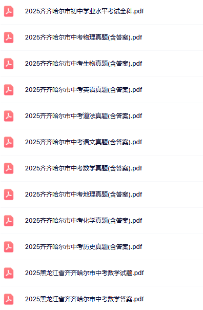 | 资源亮点 | ✅ 2026中考预测 + 2025真题高清无水印扫描版 ✅ 完整试卷打包下载(全科覆盖,支持一键保存整卷) ✅ 官方标准答案解析,PDF可直接打印,纸质备考无忧 ✅ 按年份+地区分类整理,查找复习超便捷 ✅ 适用于黑龙江各地市:哈尔滨、齐齐哈尔、大庆中考备考 |