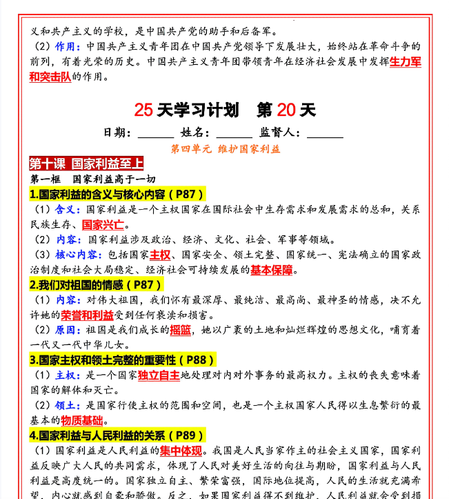 | 新版八年级上册道法(人教版)25天学习计划(答案版) | |
