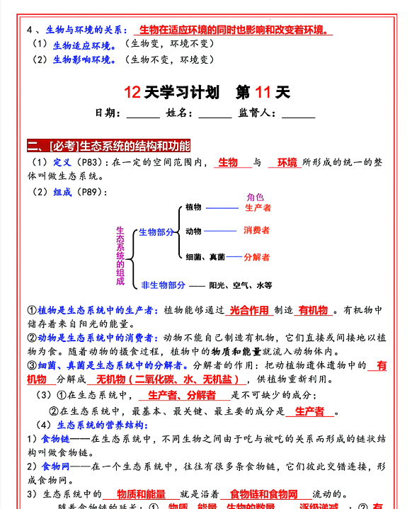 | 🔥新版八年级上册生物(人教版)12天学习计划(答案版)一键极速下载!每天1小时,系统规划+精准解析,期末冲刺、高效提分不再难,立即获取学霸学习秘籍! | |