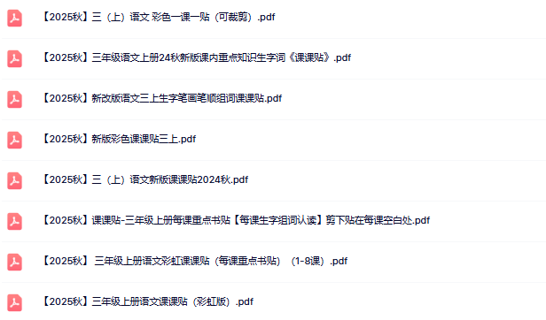 | 2025秋语文上册—三年级语文课课贴8款【高清无水印版本】🔥一键快速保存,即刻获取超清无水印教学资源!专为高效备课打造,精准匹配新版教材,助您轻松教案无忧,效率翻倍不将就!速存速用,领先一步! | |