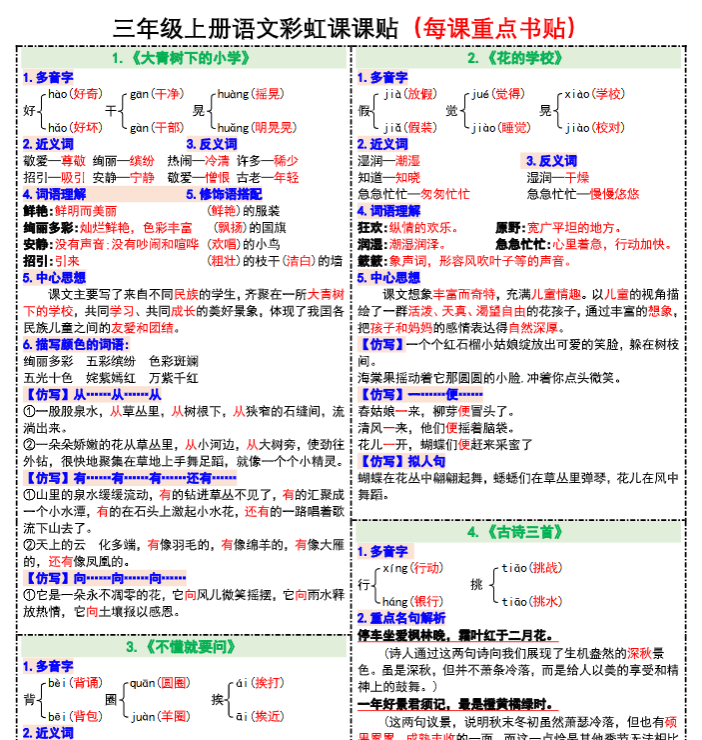 | 2025秋语文上册—三年级语文课课贴8款【高清无水印版本】 | |