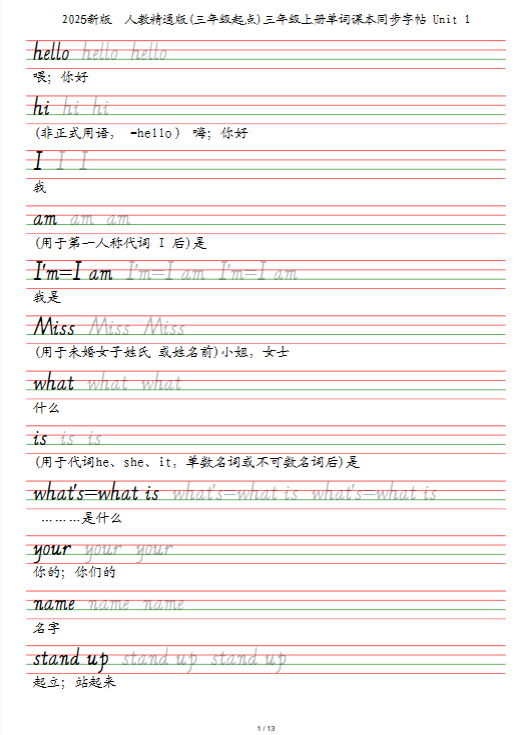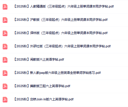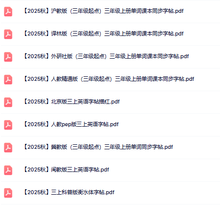 | 核心亮点 | ✅ 2025秋季新版全收录:人教PEP、译林版、外研版、苏教版等全覆盖 ✅ 高清原图扫描:逐字放大不模糊,笔锋细节清晰可见 ✅ 智能双模格式:一键保存高清PDF|一键下载可打印版 ✅ 动态笔顺图解:每笔动画演示+四线三格规范示范 ✅ 分类分级整理:按年级、版本、字母表顺序科学排序 |