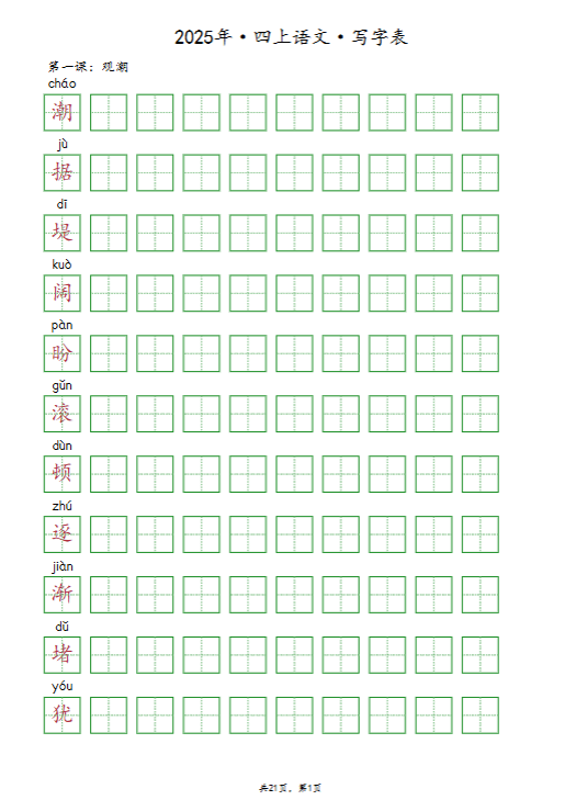 | 【立即一键下载】2025秋四上全三表同步抄写默写模板,练好规范字,考试多拿10分! | |