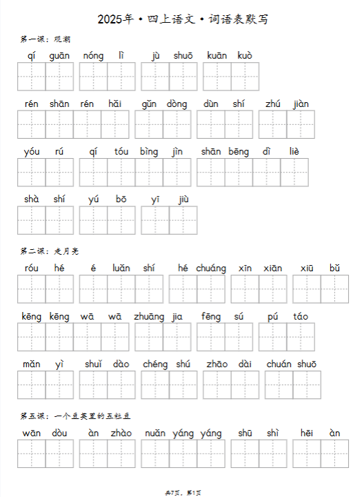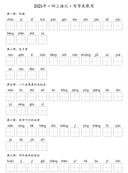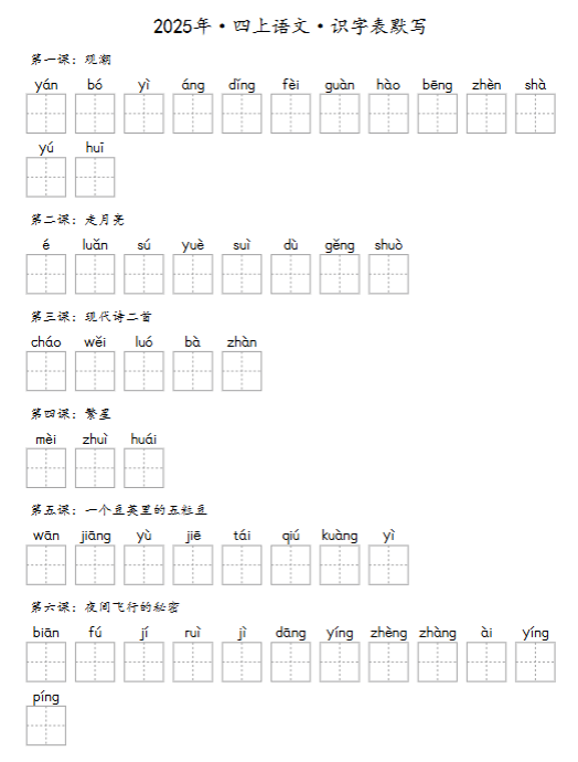 | 2025秋四上《识字表》《写字表》《词语表》同步抄写默写训练手册(高清可打印版) | |