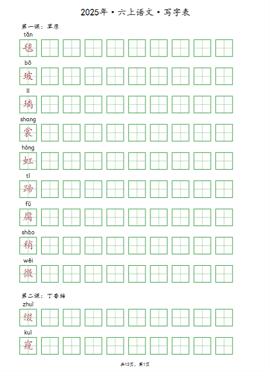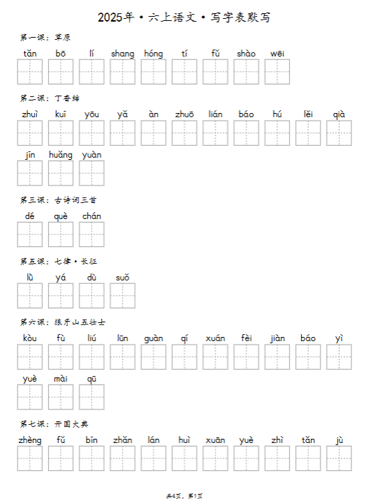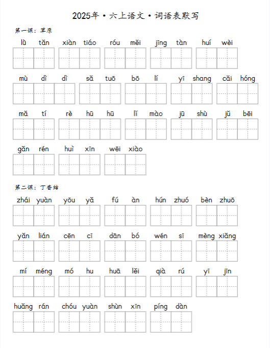 | 🔥一键快速保存!2025秋六上《识字表》《写字表》《词语表》同步抄写默写全收录!高清word可打印,告别手抄速练,家长教师必备神器,错过再无!立即点击获取高效学习工具! | |
