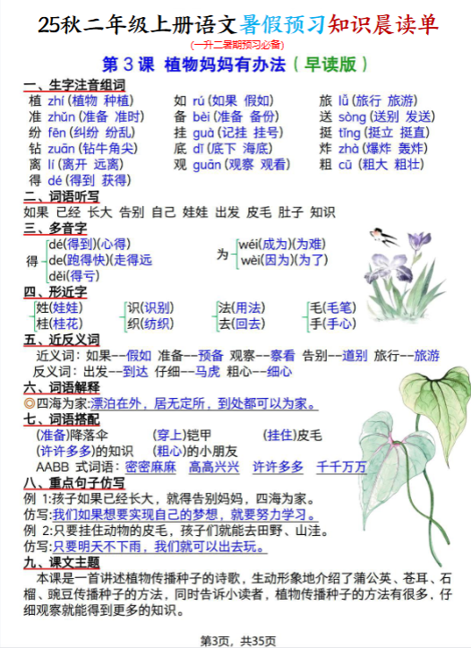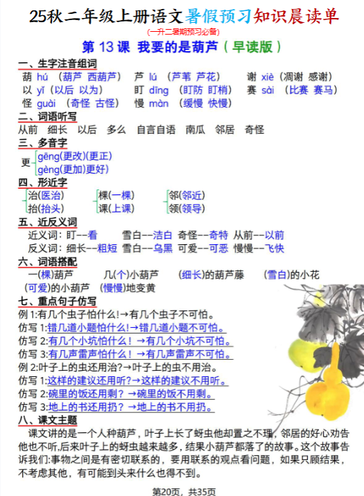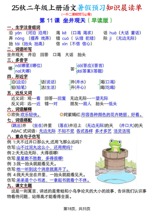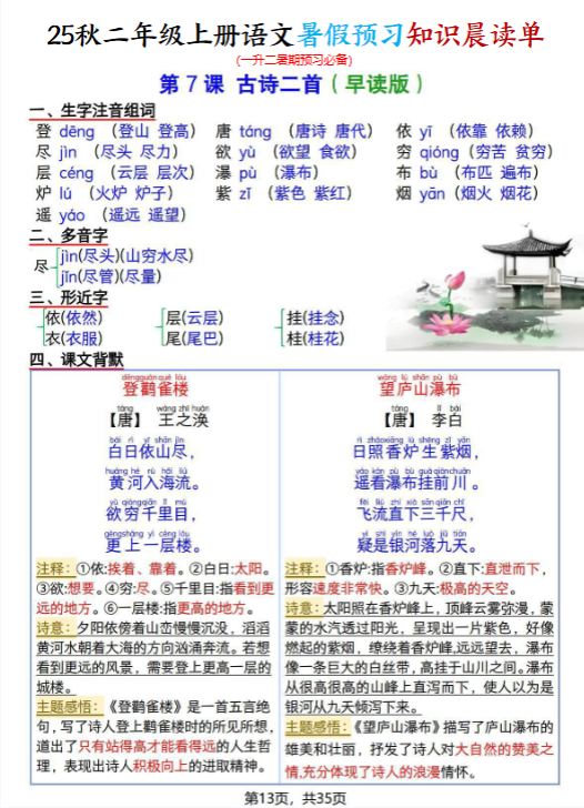 | 一键保存2025秋二上语文暑假预习知识晨读单(35页全),每日晨读10分钟,开学逆袭领先一步!立即点击快速下载,抢先开启高效预习模式! | |