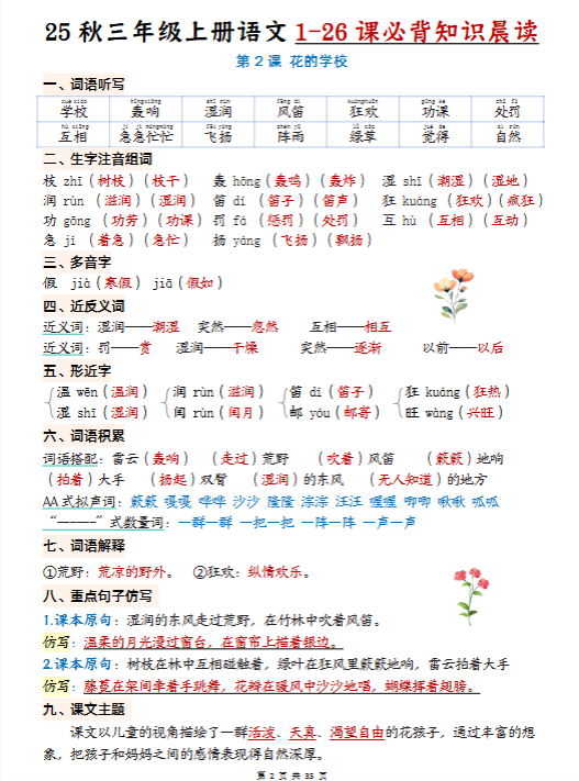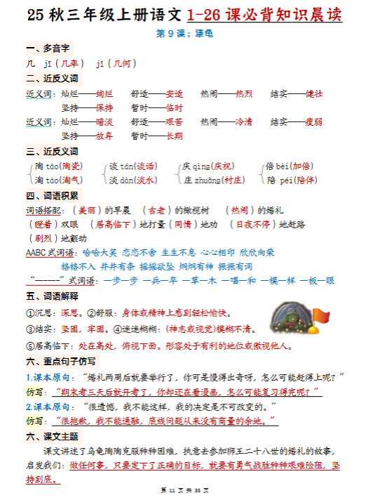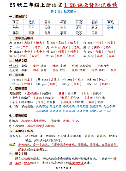 一键快速保存,全套2025秋三年级上册语文1-26课必背知识晨读单(35页PDF高清版)!每日晨读科学规划,3分钟速记核心考点,扫码即存,让背诵更轻松高效!限量内部资料,错过再无!