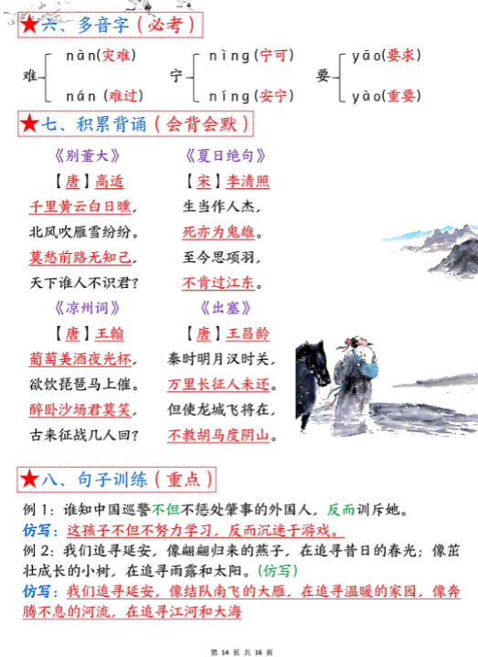 | 资源亮点 | ✅ 精准对应2025秋季新版教材,1-8单元全覆盖 ✅ 浓缩8大必背知识点:近反义词、病句修改、修辞运用、课文中心思想、古诗词默写要点、文言文重点虚词、写作提分模板、阅读理解答题公式 ✅ 高频考点+易错清单+考试真题标注,复习一目了然 ✅ 全新高清排版,支持一键保存打印,复习更便捷! |