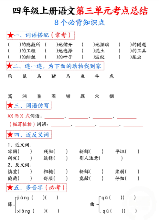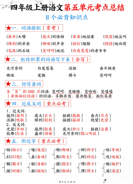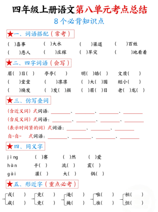 | 2025秋四年级语文上册1-8单元考点总结(8个必背知识点)|附高清可打印版 | |
