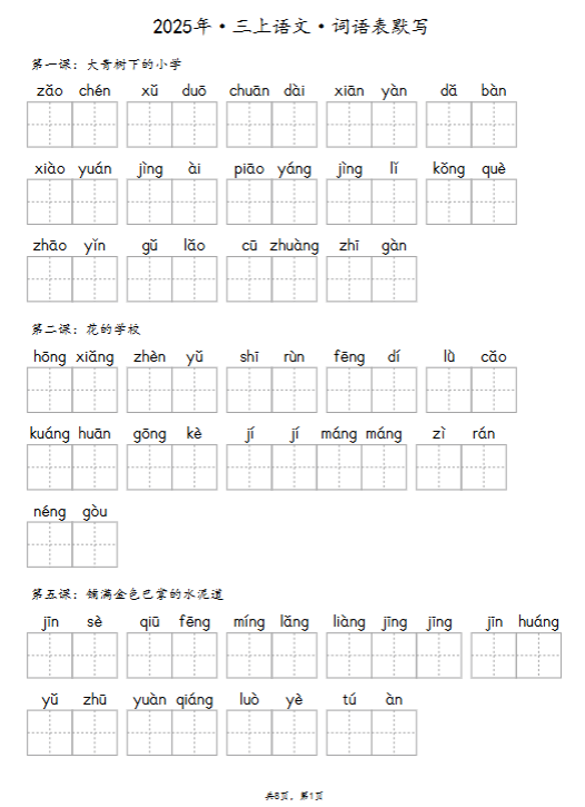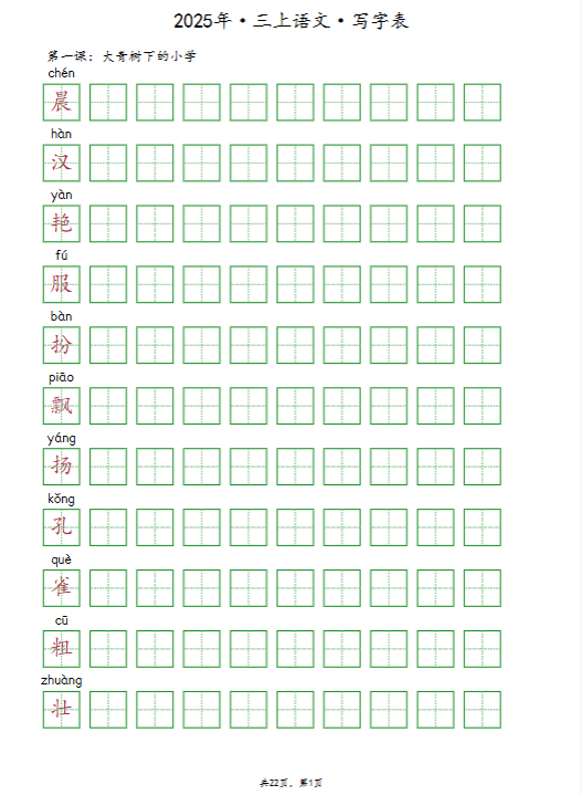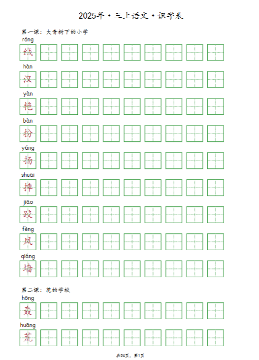 一键快速保存!2025秋三上《识字表》《写字表》《词语表》同步抄写默写全收录,高清word可打印+PDF高清版,期末备考高效神器,免费极速下载助孩子赢在起跑线!