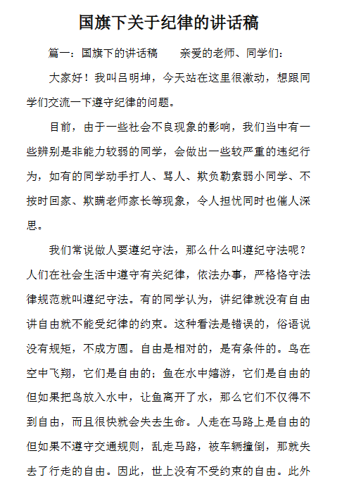 | 一键快速保存!3份纪律国旗下讲话最新整理版【高清可编辑打包】免费领取,立即下载高清Word/PDF模板,助你轻松完成校园演讲准备,错过再无!点击获取高效教学素材! | |