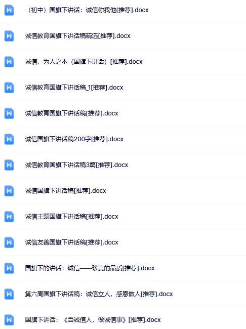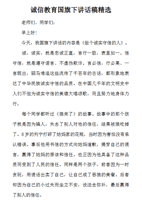 | 30份诚信国旗下讲话最新整理版【高清可编辑打包】 | |