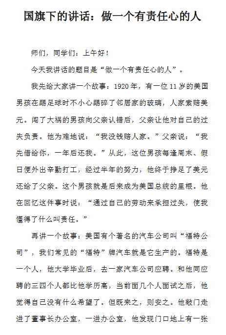 | 15份责任国旗下讲话最新整理版【高清可编辑打包】 | |