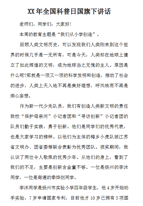 一键快速保存,科普日国旗下讲话最新整理版【高清可编辑打包】