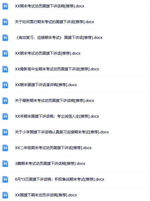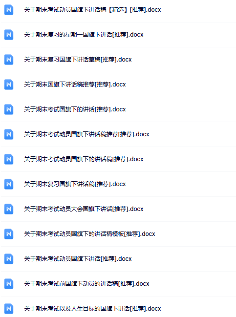 | 一键快速保存,98份期末国旗下讲话最新整理版【高清可编辑打包】限时免费下载!覆盖小学到高中全学段,主题丰富、格式规范、即点即用,告别繁琐备课,高效提升演讲质量,错过再无!立即点击获取完整资料! | |