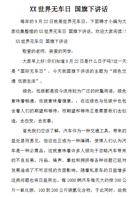 | 3份无车日国旗下讲话最新整理版【高清可编辑打包】 | |
