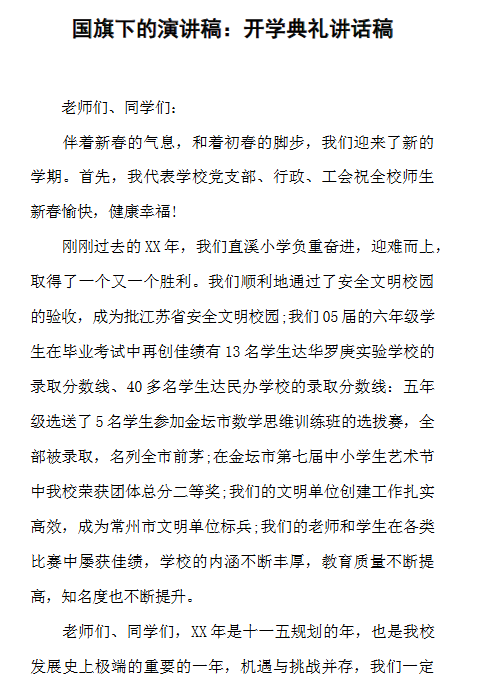 | 一键快速保存!8份开学典礼国旗下讲话最新整理版【高清可编辑打包】——权威模板即点即用,助您开学演讲高效准备,精彩一夏不容错过!立即点击获取完美讲稿! | |