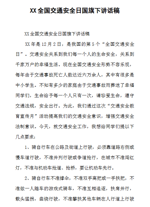 | 一键快速保存!9份交通安全国旗下讲话最新整理版(高清可编辑打包)|标准格式+丰富内容|学生演讲模板直接套用,立即提升晨会仪式感! | |