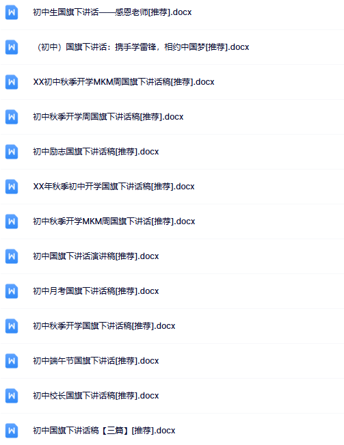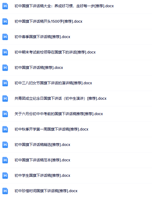 | 【Word可编辑+高清精编】72套初中国旗下讲话全打包!一键快速下载,告别熬夜整理,班主任专用资源库立即启用! | |