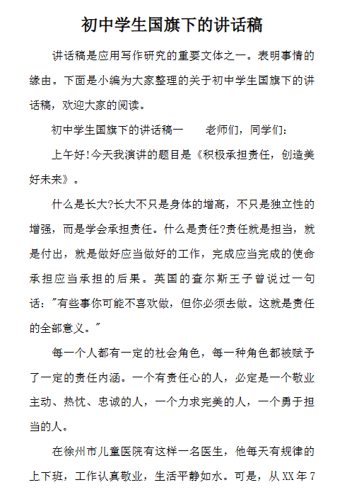 | 使用场景 | 📚 初中每周升旗仪式演讲必备 📚 班主任工作例会发言参考 📚 团支部活动主题演讲素材库 📚 学区评比展示PPT配套讲稿 |