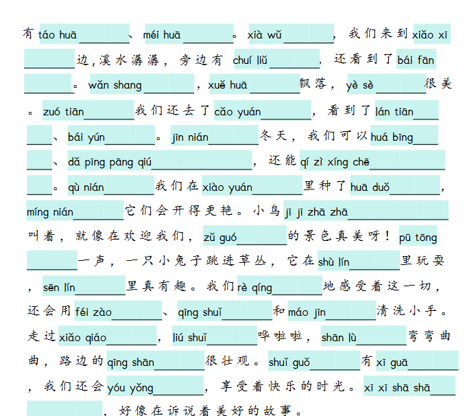 2025秋一上|语文 词语情境默写练习(25新教材版)