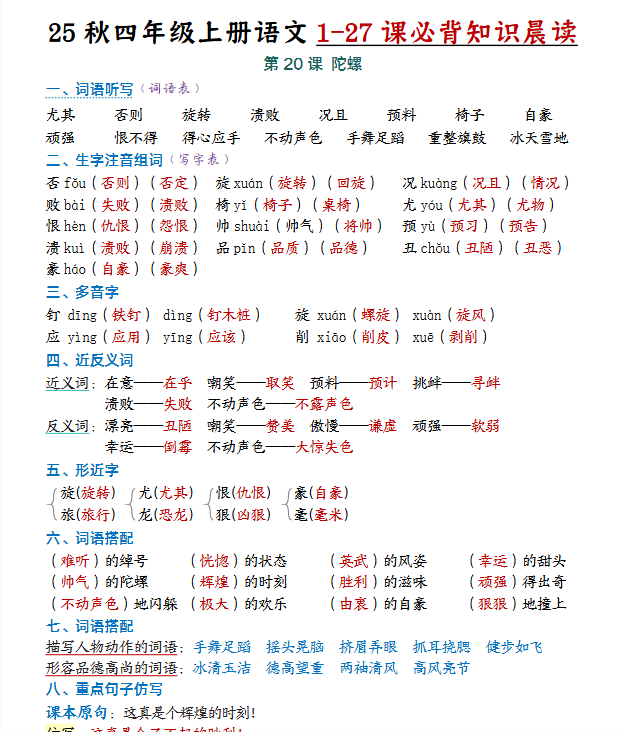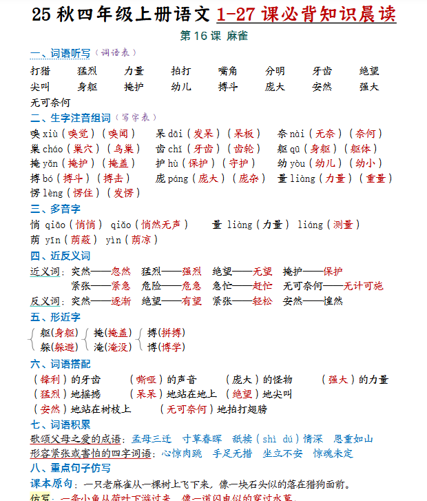 | 一键快速保存,2025秋四年级上册语文1-27课必背知识晨读(36页完整版)→速存PDF,每日晨读效率暴涨,学习领先一步不费力!限时免费领取,错过再无! | |