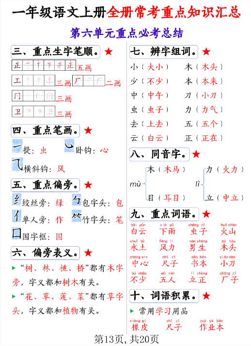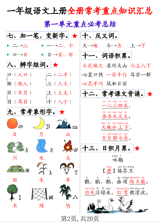 | ✨一键极速下载!2025秋一年级语文上册全册20页常考重点知识汇总📚——图解核心考点+记忆口诀,助萌娃轻松拿高分!限时免费速存,别让娃输在起跑线! | |